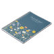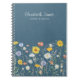 Cuaderno floral elegante moderno colorido y caprichoso presenta flores silvestres de acuarela de amapola, flores de margarita naranja blanca azul con acentos de vegetación en fondo de textura azul artesanal. Agrega nombre o texto personalizado. Este cuaderno de flores de acuarela será un acento femenino perfecto para su oficina.