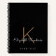 Moderno portátil negro personalizado con su nombre inicial y tipografía de oro mínimo y escritura blanca. Agregue un título si lo desea.