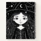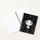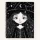 Este divertido cuaderno incluye un pequeño y caprichoso dibujo de un chica brujo.