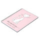 Un cuaderno de color rosa dulce y ondulado con un gato blanco de moda con una nariz y un collar rosados y tu nombre en un guión elegante y a la moda con chispas. Añadir un título o dejar en blanco.
