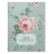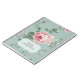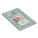 Portátil personalizado con un ilustracion de color floral vintage francés de rosa y flores sobre cartouche rosa mutado pastel y verde azulado y antiguo con nombre o texto personalizado. Un lindo cuaderno personal para una moda retro.