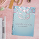 Elegante diseño de cuaderno personalizado con una elegante frontera barroca rosa sobre fondo azul aguamarina. El texto es totalmente personalizable.