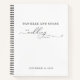 Hermoso cuaderno de planeamiento boda. Elegantes nombres de guión con fecha y corazón en la parte posterior. Perfecto para siempre para ayudarte a mantenerte al tanto de tu gran día de trabajo.
