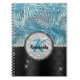 Cuaderno Moda giratoria turquesa aqua purpurina hojas monog