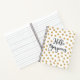 Un cuaderno de puntas de polka negro y dorado de moda con las palabras, Hola preciosa. Un lindo cuaderno para toda tu planificación. Diseñado para ti por Blackberry Boulevard.