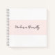 Moderna Moda Minimalista Rubor Pink White Notebook. Personaliza un regalo único y elegante para ti, amigos y familia. Agregue su nombre personalizado en el script de escritura a mano de moda en un fondo rosa y blanco de color negro.