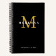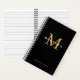 Portátil negro de moda con monograma personalizado con nombre en blanco y dorado. Mantenga o cambie los colores de fuente y de fondo a su favorito. Perfecto para notas, ideas, planes, metas y más importantes.