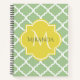 Cuaderno Moda Pastel Verde Quatrefoil Amarillo Nombre Monog