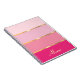 Organice sus pensamientos con estilo con este cuaderno de moda, adornado con una variedad de rayas rosas que van desde pastas suaves hasta tonos audaces. Las líneas doradas separan los colores, añadiendo un toque de lujo al diseño. Personalizar con su nombre, monograma o cualquier texto que desee, o manténgalo sencillo eliminando el texto de ejemplo. Este portátil combina la moda y la funcionalidad, lo que lo convierte en un accesorio perfecto para su escritorio o un regalo atento.
