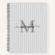 Write in style with this elegant personalized notebook, designed to add a chic touch to everyday notes, journaling, or planning. Featuring a soft gray and white striped background, the cover is customized with your monogram initial and name in a fancy script font, creating a timeless and feminine stationery essential.