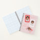 Featuring three customizable photo frames with scalloped edges, handwritten Merry Christmas and Fa La La lettering, and a soft blush pink background with playful holiday doodles and tiny hearts — this notebook is as cozy as the season itself.