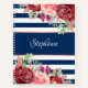 Cuaderno Moderna franja floral azul y blanca personalizada