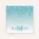 Elegante y Moderna Libreta de Moda Brillante Azul Acuático personalizada con tu Monograma Inicial y Nombre. Brillante con destellos.
