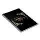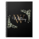 Cuaderno elegante de monograma de hojas de acuarela con nombre que presenta una inicial de monograma dorado y su nombre en un elegante guión blanco sobre fondo negro. Diseñado por Thisisnotme©