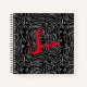 Cuaderno Moderno Black White Abstract Lines Red Journal