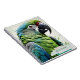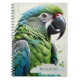 Loro verde brillante en la cubierta de un cuaderno. Papelería ideal para llevar, en casa, trabajo o escuela.