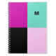 Un bloc de notas elegante y con espiral, con un diseño de bloques de color abstracto moderno. El diseño de la cubierta frontal se divide en cuatro rectángulos, en magenta, negro, turquesa y rosa, lo que te aporta un vibrante toque de color al día. La parte trasera del cuaderno es un magenta plano. Personalice el portátil práctico con una inicial, que aparecerá como un monograma en la parte superior derecha de la cubierta.