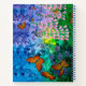 Impresión de mi color original del agua con mariposas monarcas revoloteando sobre flores de pasión violeta y florecimiento del folxglove en un colorido día soleado.