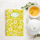Cuaderno Monograma amarillo y blanco con flores de mod retr