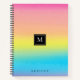 Un diseño de arcoíris de acuarela femenina con colores rosa, naranja, turquesa, azul, púrpura, verde y turquesa. Un diseño de cuaderno escolar con monograma perfecto para niñas que aman los colores del arcoíris.