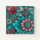 Monograma, azul cian, rojo, flores caprichosas