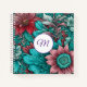 Cuaderno Monograma, azul cian, rojo, flores caprichosas