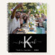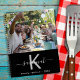Un fondo negro de moda. Personaliza y agrega tu propia foto, un nombre, una letra monográfica y un texto. El nombre está escrito en blanco con un gran guión de estilo moderno con letras a mano con toques. La letra del monograma en gris. Para mantener los cambios sólo eliminar el nombre del ejemplo, deje los espacios o la emoji delante y después del nombre