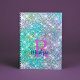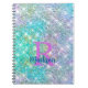 Cuaderno Monograma brillante falso azul de unicornio iridis