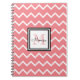 Cuaderno Monograma Chevron con el nombre rojo Girly Pastel