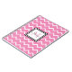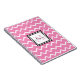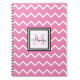 Portátil de espiral de patrón de chevron blanco y rosa personalizado con un nombre en negro y monograma con un color rosado coincidente.