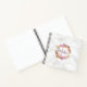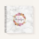 Un cuaderno cuadrado de espiral diseñado con una corona floral hecha con flores rosadas y naranjas y ramas, brotes y hojas. Esta imagen digital fue creada originalmente con acuarelas y es bonita y de moda. El fondo es una imagen de elegante mármol blanco. Personalizar con un primer y un nombre de monograma.