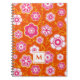 Este cuaderno con motivos florales de colores audaces está listo para su monograma. Repetir la impresión de flores folclóricas al estilo de los años 60 se crea en una paleta brillante de color rosa cálido, blanco y rojo naranja, con el acentuado del monograma, listo para que lo edite con el clic de un ratón.
