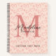 Cuaderno de monograma de letra cursiva con patrón de corazones rosados pastel lindos