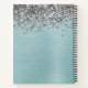 Un cuaderno de monograma con purpurina con una hermosa textura de metal brillado en azul aguamarina y decorado con purpurina plateada. Personaliza el cuaderno con el nombre de tu elección para hacer que alguien se sienta especialmente especial. Es un regalo divertido para cumpleaños o Navidad. Diseñado para ti por Blackberry Boulevard.