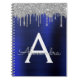 Cuaderno en espiral de monograma e inicial con brillo metálico de lámina falsa azul marino y plateado. Esto hace el regalo perfecto para cumpleaños de 16 años, boda, despedida de soltera, aniversario, baby shower o fiesta de soltera para alguien que ama el lujo glamoroso y los estilos chic.