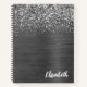 Una hermosa textura de metal cepillado gris con brillo plateado decora este cuaderno de monograma brillante. Personalice el cuaderno con el nombre de su elección para hacer que alguien se sienta especialmente especial. Es un regalo divertido para cumpleaños o Navidad o ideal para planificar una boda. Diseñado para usted por Blackberry Boulevard.