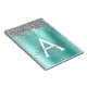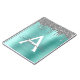 Cuaderno en espiral monograma e inicial de metal cepillado con brillo metálico plateado y azul teal acuático y falso foil. Esto hace el regalo perfecto para alguien que ama el lujo glamoroso y los estilos chic en cumpleaños dulces 16, bodas, duchas de novia, aniversarios, duchas de bebé o fiestas de despedida de soltera.