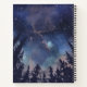 Este cuaderno bohemio presenta un nombre y un monograma de escritura personalizado, y un cielo de medianoche con acuarela sobre el bosque.