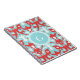 Cuaderno Monograma de patrón tribal de ikat rojo turquesa m