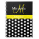 Cuaderno Monograma de puntos de polka blanco amarillo