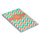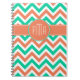 Cuaderno de patrón de rayas de chevron de verano en colores veraniegos de agua, coral y blanco, coronado con una banda de cinta de coral y un marco de monograma redondo a juego. Personalice con su monograma u otro texto seleccionando el botón "Personalizar" e introduciendo su texto en la plantilla de diseño. Puede cambiar los tipos de letra y tamaños de letra, así como mover el texto para que encaje dentro del marco.