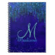 Cuaderno Monograma de unicornio azul turquesa con gotas de