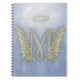 Monograma del ángel del oro con alas del ángel y un halo. "Letra M"