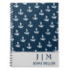 Cuaderno Monograma del patrón de ancla náutica azul de la m
