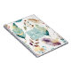 El diseño de este monograma personalizado presenta un fondo floral con acentos celestes de color dorado, incluyendo un gran sol, luna, estrellas, ojo, triesquelión y pentáculo. Se pueden manipular todos los gráficos de color dorado y el texto, las fuentes y el color de los cuadrados son personalizables.