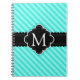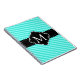 Modelo diagonal azul de las rayas de la aguamarina moderna con diseño negro elegante del marco de la bandera en el centro para su inicial modificada para requisitos particulares del monograma.
