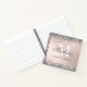 Portátil elegante y de moda Monograma Blanco y Gris Script Name cuadrado, bordeado por un falso purpurina plateado y un fondo de Relieve metalizado metálico rosa de color rosa para su nueva oficina, trabajo administrativo y profesional, de vuelta a la escuela, bocetos de arte, notas de recetas, etc. Elija entre una variedad de tipos de inserción, incluyendo regla amplia, regla de colegio y en blanco para esbozar.