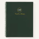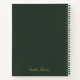 Un cuaderno sencillo y elegante con colores verdes del bosque con un color dorado para el nombre y las letras de monograma para sus recetas. También podría ser una buena idea para un chef pastelero, un amante de la cocina, etc.