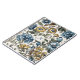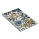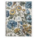 Flores azules y doradas de estilo boho de inspiración exótica vintage y hojas de salvia en fondo crudo con elemento redondo y monograma.