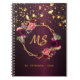 Un oscuro fondo burdeos de aspecto metálico con falsas estrellas doradas. Decorada con un marco geométrico de oro falso y flores de color burdeos, rosa y rosa dorado. Personalice y agregue sus letras de monograma, iniciales.